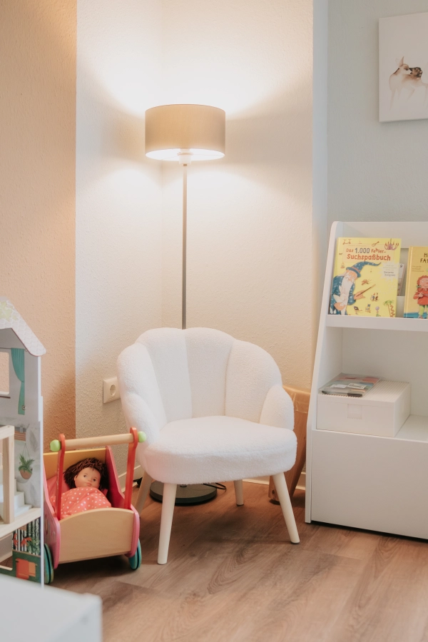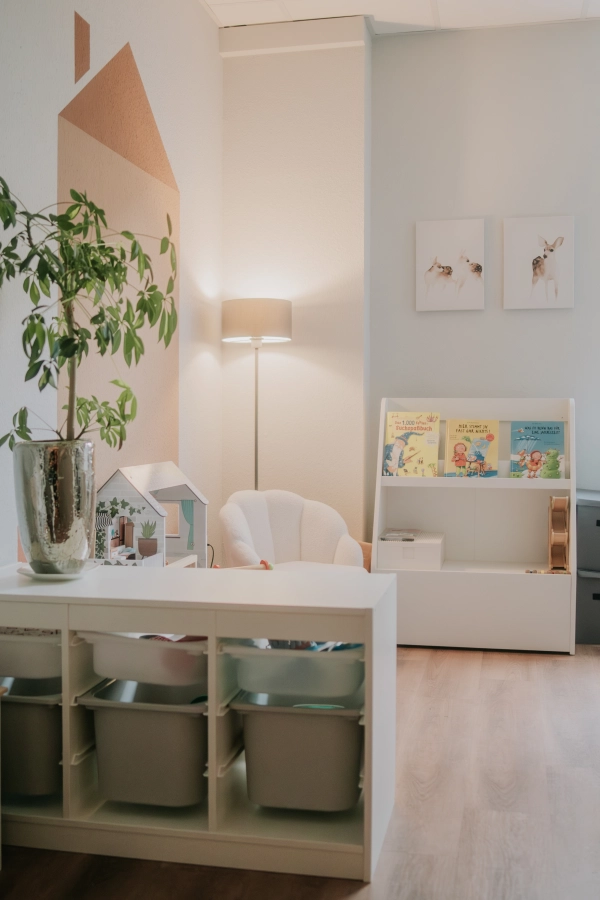 Besonders für die Kindertherapie steht ein spezieller Rollenspiel-Raum zur Verfügung. Die Praxis befindet sich in der barrierefrei zugänglichen Ackerstraße 6a im 1. Obergeschoss und ist mit einem Aufzug und einer Klimaanlage ausgestattet.