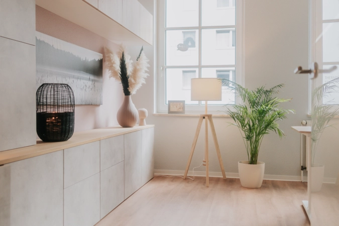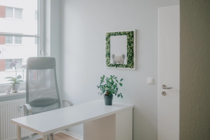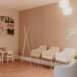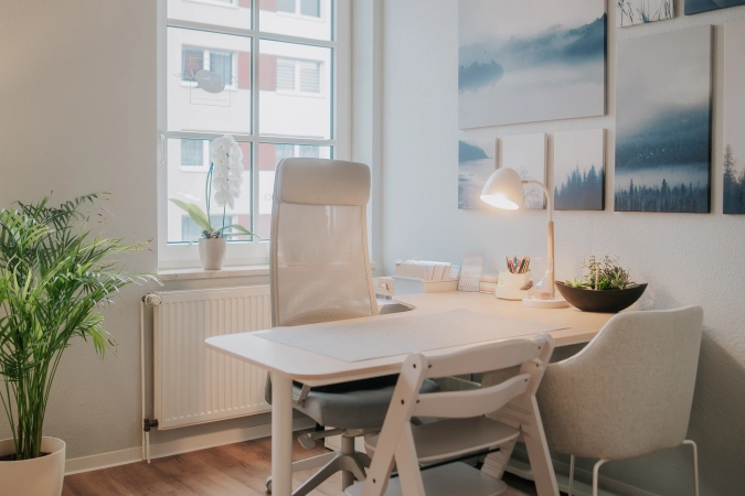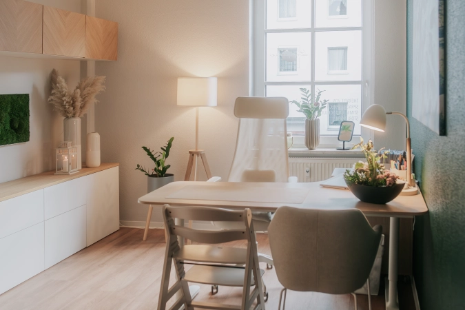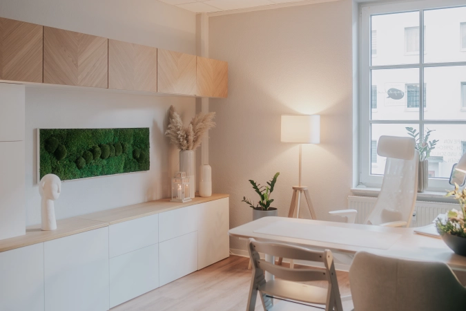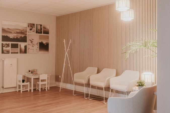 Ich lege großen Wert darauf, dass sich meine Patienten in meiner Praxis wohlfühlen. Daher sind die Räumlichkeiten in warmen Farben gehalten und mit modernem Mobiliar ausgestattet, was eine angenehme Atmosphäre schafft.